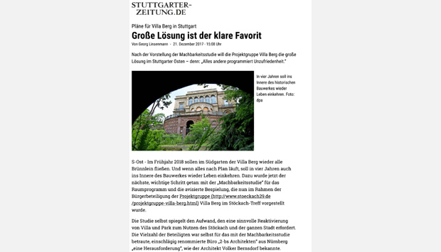 21.12.17 Villa Berg Stuttgart, Artikel der Stuttgarter Zeitung