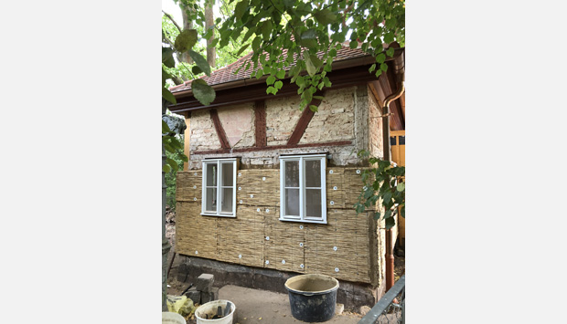 Ausbau mit Außen- und Innendämmung je nach Gebäudeteil aus Schilfdämmung; sämtliche Putze aus Lehm; Kastenfenster; Sockeltemperierung. Neue Bauteile (Windfang/Balkon) aus Stahlprofilen.